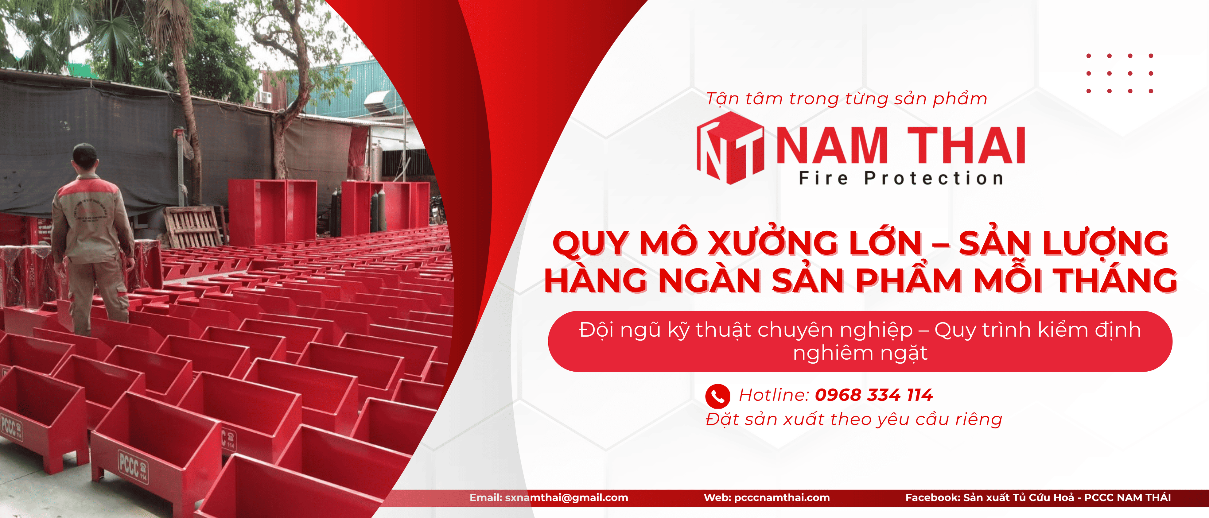 NAM THÁI chuyên sản xuất và cung cấp tủ, thiết bị PCCC đạt chuẩn an toàn, đáp ứng các yêu cầu khắt khe nhất trong thi công và vận hành. Với đội ngũ kỹ sư chuyên nghiệp, dây chuyền sản xuất hiện đại và quy trình kiểm soát nghiêm ngặt, chúng tôi cam kết mang đến cho khách hàng: