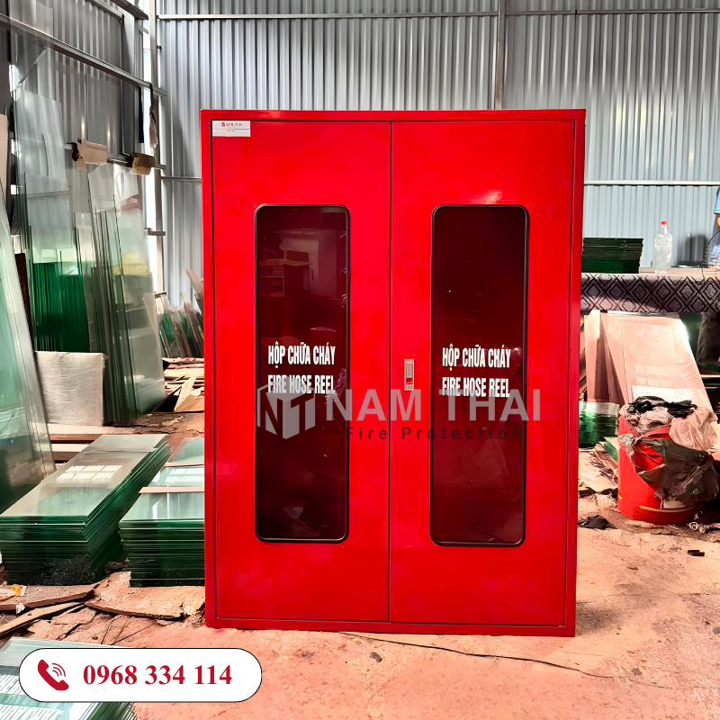 👉 Tủ treo vòi Nam Thái: Vòi đã được gấp nếp sẵn trên 40 đinh treo. Khi cần dùng, người lính cứu hỏa chỉ cần cầm đầu lăng phun và chạy về phía đám cháy, vòi sẽ tự động tuột khỏi đinh và duỗi thẳng tức thì. Tiết kiệm thời gian vàng!