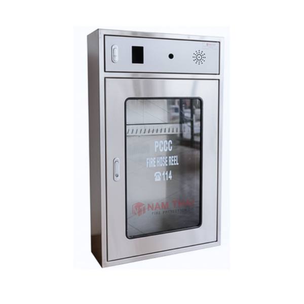 Tủ đựng cuộn vòi Inox 800x500x180 mm tích hợp chuông – đèn – nút ấn báo cháy là dòng tủ PCCC Inox 304 đa năng, thiết kế 2 ngăn riêng biệt: