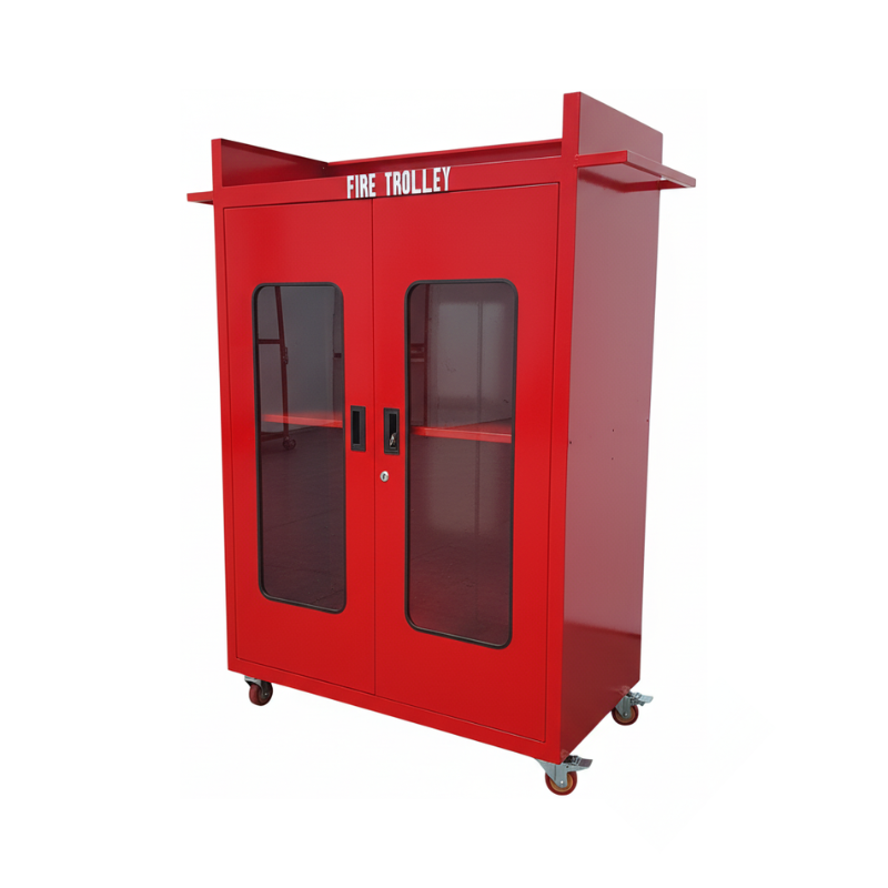 Tủ đựng thiết bị chữa cháy 1200x1000x400 mm được thiết kế chuyên dụng để bảo quản các dụng cụ cứu hộ – cứu nạn như búa, kìm cộng lực, dây thoát hiểm, mặt nạ phòng độc, bình dưỡng khí, đèn pin… Điểm đặc biệt là tủ được gắn bánh xe di chuyển, giúp dễ dàng vận chuyển đến nhiều vị trí khẩn cấp, tăng tính linh hoạt khi cứu hộ.